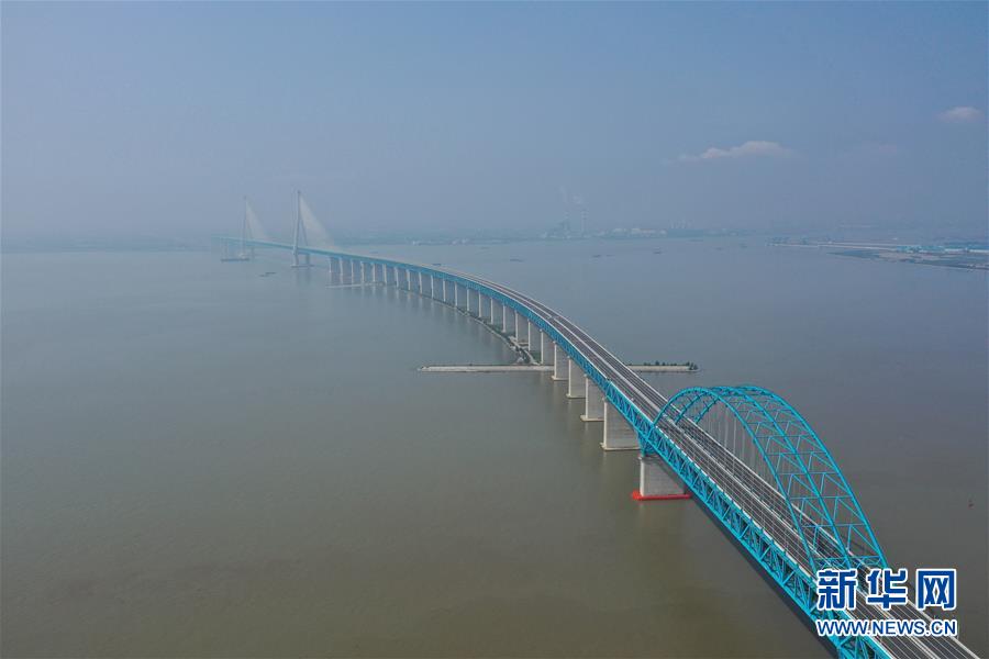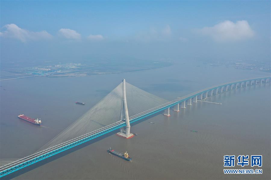 滬蘇通長江公鐵大橋(6月29日攝,無人機照片)。即將于7月1日通車的滬蘇通長江公鐵大橋北起江蘇南通,南至江蘇張家港,公鐵合建跨江正橋全長5827米,為集合高速公路、客貨混線鐵路、高速鐵路的“三合一”過江通道,建成通車后將有效促進長三角城市群跨江融合、協(xié)同發(fā)展。新華社記者季春鵬攝
