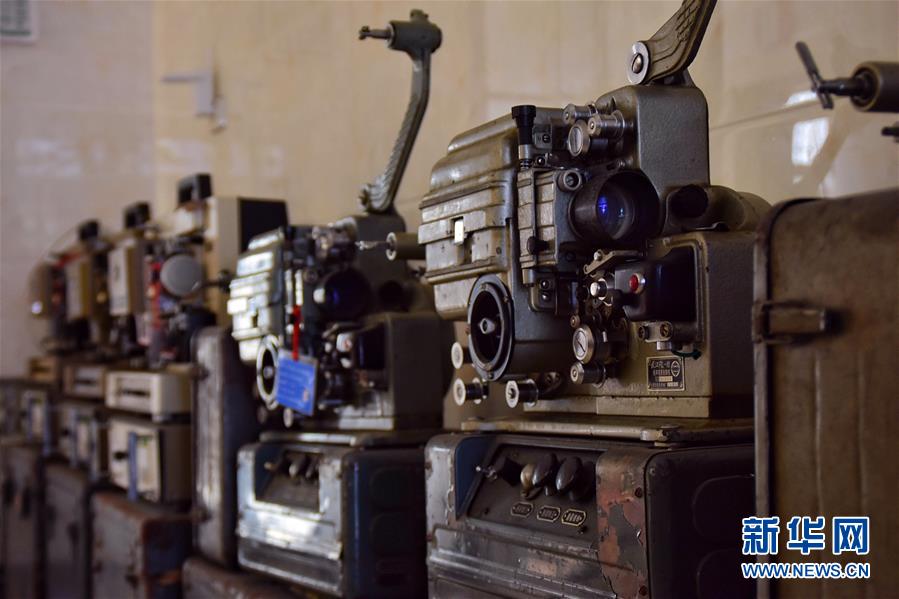 6月30日,朱生榮和兒子朱強(qiáng)創(chuàng)辦的“馬鳴電影館”內(nèi)存放著第一代國產(chǎn)放映機(jī)“老五四型”放映機(jī)。新華社記者鄭夢雨攝