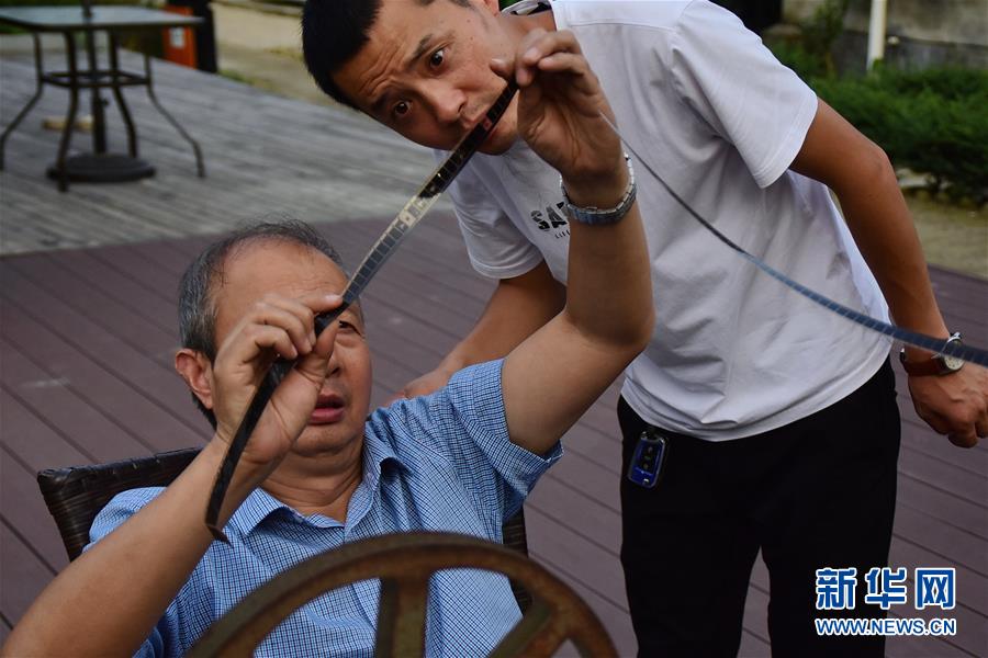 在浙江嘉興桐鄉(xiāng)市洲泉鎮(zhèn)馬鳴村,王志華、朱文炳、朱生榮、朱強(qiáng)四代電影放映員,“接力”放映電影五十余年。一臺放映機(jī)、幾盤膠片、一面白墻,構(gòu)成他們的“流動電影院”,“噠噠”的走帶聲轉(zhuǎn)出了光影老味道,也轉(zhuǎn)動了整村人的文化生活。第四代放映人“85后”小伙朱強(qiáng)從小在幕布前長大,深受父輩影響。隨著數(shù)字電影的普及,膠片電影逐漸退場。如今的他在馬鳴電影館、學(xué)校等場所進(jìn)行教學(xué)、展示等活動,宣傳電影文化。對他而言,一代接一代從事電影工作,就是為了承續(xù)傳統(tǒng)。“師爺爺教我們認(rèn)真放好每部電影,即便只有一位觀眾,我們也不會讓它停機(jī)?!敝鞆?qiáng)說。