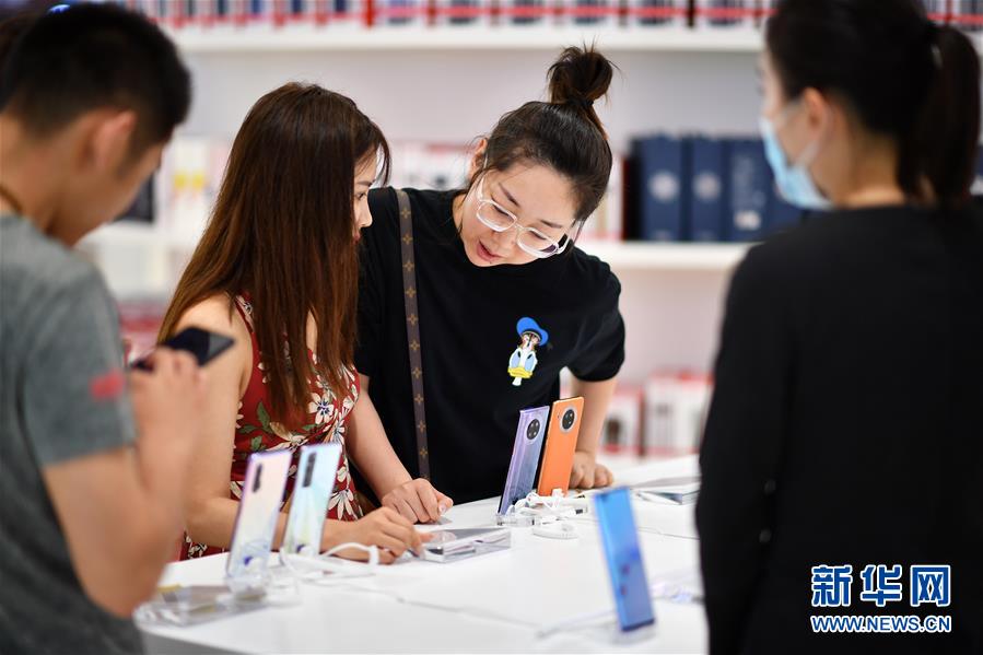 7月1日,顧客在??谌赵聫V場免稅店選購手機等電子消費產(chǎn)品。當(dāng)日,海南開始實施調(diào)整后的離島免稅購物政策。海南離島旅客每年每人免稅購物額度提高至10萬元,電子消費產(chǎn)品等7類新增商品開售。新華社記者郭程攝