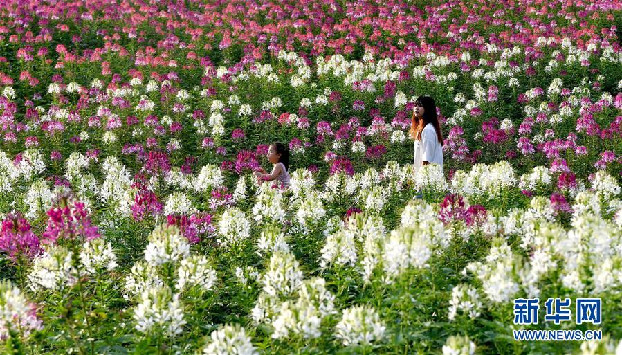 7月1日,市民在位于留壩縣城的金水灣花海游玩。近日,陜西省漢中市留壩縣金水灣花海的各類(lèi)鮮花次第綻放,絢麗繽紛。新華社記者劉瀟攝