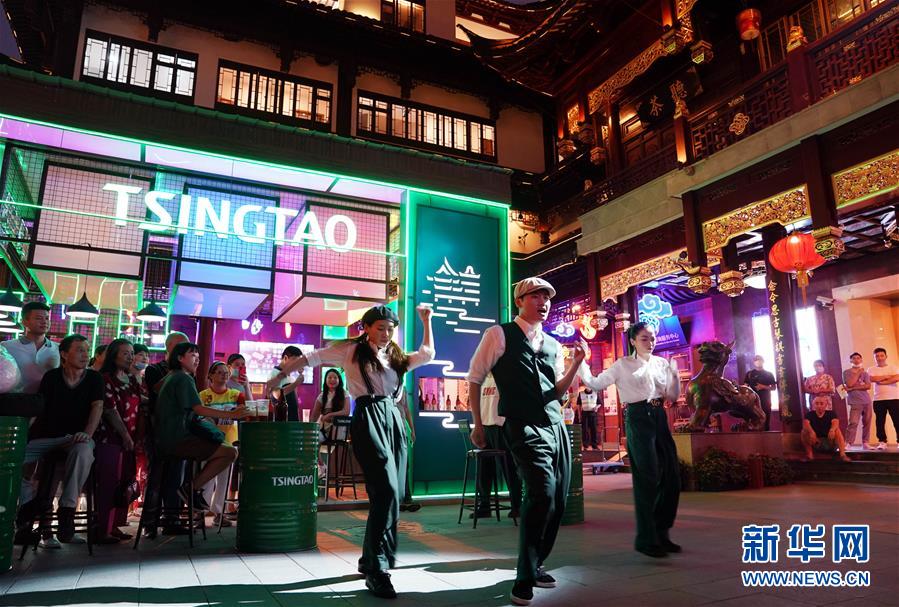 7月3日,游人在上海豫園中心廣場(chǎng)觀看街舞表演。從7月第一個(gè)周末起,上海豫園原有的“豫園六點(diǎn)半”集市全面升級(jí),煥彩燈光、演藝活動(dòng)和花車集市全線更新,讓市民和游客在觀燈、觀人、觀演的沉浸式體驗(yàn)中,享受夏日特色的“食玩”樂(lè)趣。新華社記者 劉穎 攝