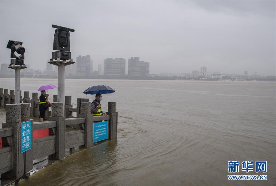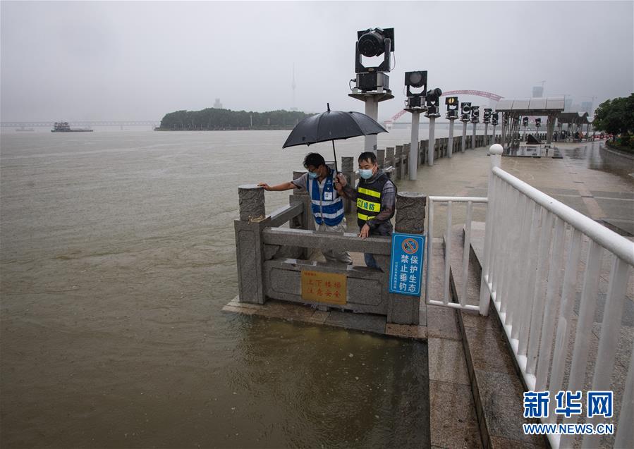 7月6日,工作人員在武漢龍王廟觀察水情。記者6日從武漢市防汛抗旱指揮部辦公室獲悉,5日以來,武漢遭暴雨襲擊,全市多處路段漬水。至6日4時(shí),長(zhǎng)江漢口站超設(shè)防水位1.79米,漢江新溝站超警戒水位0.01米。鑒于當(dāng)前水雨汛情和漬澇情況,武漢市從6日5時(shí)起,將排澇應(yīng)急響應(yīng)級(jí)別提升至Ⅱ級(jí);從6時(shí)30分起,將防汛應(yīng)急響應(yīng)級(jí)別提升至Ⅱ級(jí)。新華社記者肖藝九攝