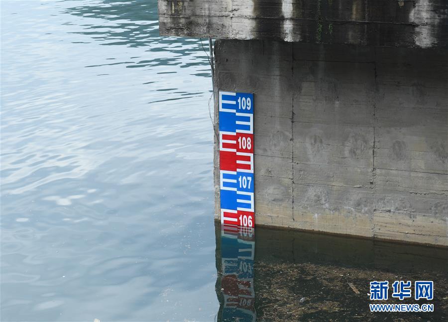 7月6日拍攝的新安江水庫的水位標尺。受連續(xù)強降雨影響,位于浙江建德的新安江水庫水位持續(xù)上漲。據(jù)浙江省水利廳發(fā)布的數(shù)據(jù),截至7月6日14時,水庫水位上漲至106.54米,超汛限水位0.04米,且仍在上漲中。為確保水庫防洪安全、合理利用水資源,新安江水庫預(yù)計于7月7日開啟泄洪閘泄洪。新華社記者翁忻旸攝