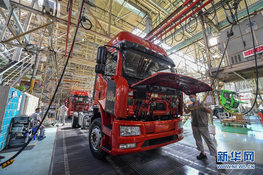 在位于長(zhǎng)春市的一汽解放總裝車間,工人在裝配車輛(6月19日攝)。中國(guó)第一汽車集團(tuán)披露,截至6月30日,集團(tuán)上半年共計(jì)生產(chǎn)整車162.23萬(wàn)輛,同比增長(zhǎng)1.5%;銷售整車163.09萬(wàn)輛,同比增長(zhǎng)2.3%。新華社記者張楠攝