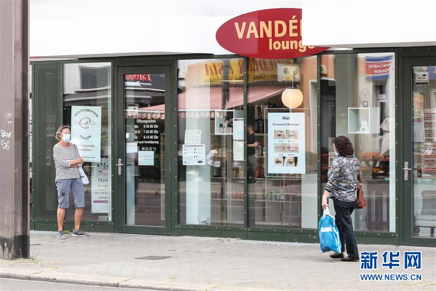7月7日,一名佩戴口罩的女子(左)等待進(jìn)入德國(guó)首都柏林的一家理發(fā)店。針對(duì)有地方官員呼吁取消民眾乘坐公交車(chē)和在商場(chǎng)購(gòu)物時(shí)須戴口罩的規(guī)定,德國(guó)聯(lián)邦政府6日表示,支持延續(xù)“口罩強(qiáng)制令”。4月底,德國(guó)全部16個(gè)聯(lián)邦州陸續(xù)出臺(tái)“口罩強(qiáng)制令”,即居民在乘坐公交車(chē)和購(gòu)物時(shí)須佩戴口罩。新華社記者單宇琦攝