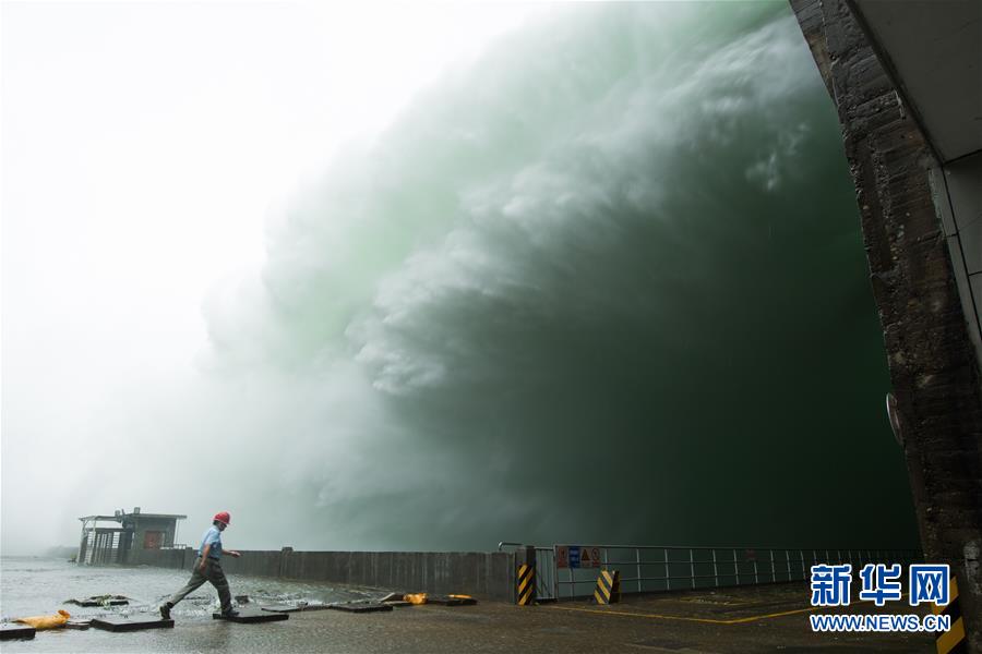 7月7日,新安江電廠工作人員從開啟7孔泄洪的新安江水庫壩底經(jīng)過。受持續(xù)降水影響,浙江新安江水庫水位持續(xù)快速上升。繼當(dāng)日10時開啟3孔、12時開啟5孔泄洪后,新安江水庫于16時增加到7孔泄洪。新安江水庫是華東地區(qū)最大的水庫,在錢塘江流域的防洪度汛中起到關(guān)鍵作用。新華社記者翁忻旸攝