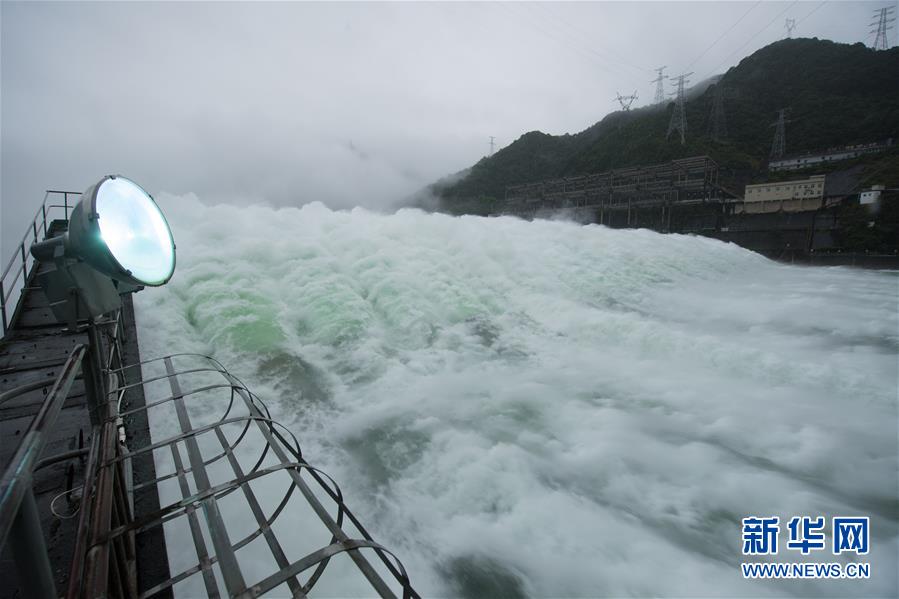 7月7日下午開啟7孔泄洪的新安江水庫(手機(jī)全景模式拍攝)。受持續(xù)降水影響,浙江新安江水庫水位持續(xù)快速上升。繼當(dāng)日10時開啟3孔、12時開啟5孔泄洪后,新安江水庫于16時增加到7孔泄洪。新安江水庫是華東地區(qū)最大的水庫,在錢塘江流域的防洪度汛中起到關(guān)鍵作用。新華社記者翁忻旸攝