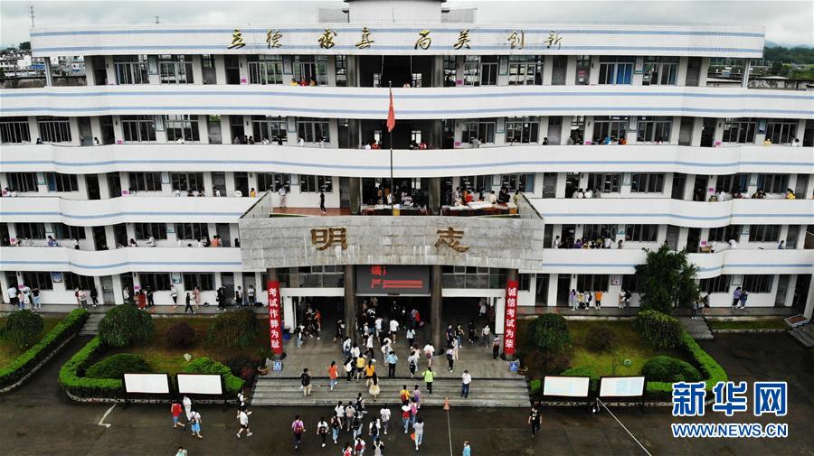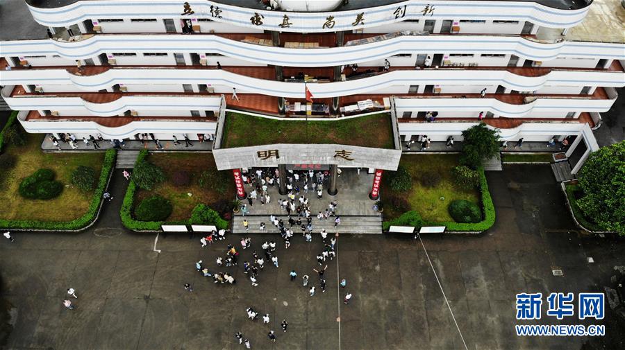 7月9日,考生進(jìn)入歙縣第二中學(xué)考點(diǎn)(無(wú)人機(jī)照片)。受強(qiáng)降雨影響,2020年高考安徽歙縣考區(qū)7月7日未能如期開(kāi)考,經(jīng)研究并報(bào)教育部批準(zhǔn),歙縣考區(qū)于9日啟用2020年普通高等學(xué)校招生全國(guó)統(tǒng)一考試語(yǔ)文、數(shù)學(xué)(文、理)科目副題進(jìn)行考試。新華社記者黃博涵攝
