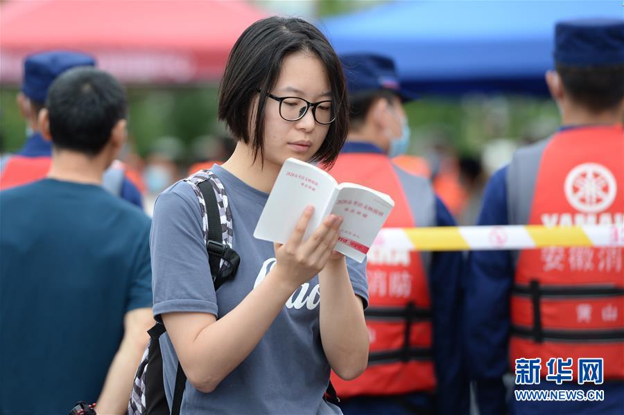 7月9日,一名考生在歙縣第二中學(xué)考點(diǎn)外復(fù)習(xí)。受強(qiáng)降雨影響,2020年高考安徽歙縣考區(qū)7月7日未能如期開(kāi)考,經(jīng)研究并報(bào)教育部批準(zhǔn),歙縣考區(qū)于9日啟用2020年普通高等學(xué)校招生全國(guó)統(tǒng)一考試語(yǔ)文、數(shù)學(xué)(文、理)科目副題進(jìn)行考試。新華社記者黃博涵攝