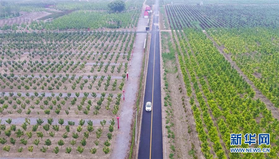 7月9日,車(chē)輛在文安縣孫氏鎮(zhèn)紀(jì)屯村公路上行駛。該條公路建成于2019年,投資400萬(wàn)元,有效推動(dòng)當(dāng)?shù)胤N植業(yè)和旅游業(yè)的發(fā)展(無(wú)人機(jī)照片)。近年來(lái),河北省文安縣推進(jìn)實(shí)施縣鄉(xiāng)公路改造、窄路基路面拓寬、村社道路硬化、危橋改造、安全生命防護(hù)等工程,不斷完善農(nóng)村物流網(wǎng)絡(luò),推動(dòng)城鄉(xiāng)交通基礎(chǔ)設(shè)施互聯(lián)互通。新華社記者李曉果攝