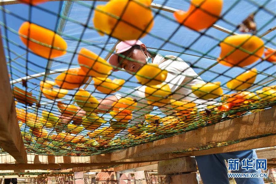 在新疆英吉沙縣一家合作社內,員工在晾曬杏子(7月2日攝)。新華社記者高晗攝