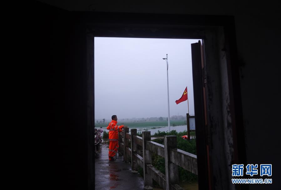 7月9日,邵忠如在圩堤上觀察水情。新華社記者萬象攝