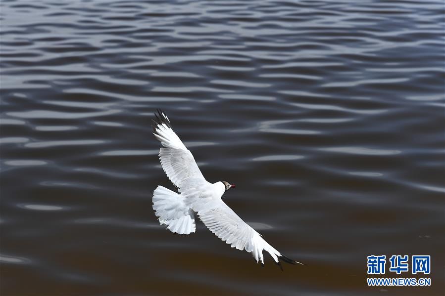 7月10日,一只棕頭鷗從青海湖湖面上飛過。盛夏時節(jié),被譽為“中國最美湖泊”的青海湖畔景色宜人,藍天、白云、湖水與草原組成一幅壯美的畫卷。新華社記者張宏祥攝