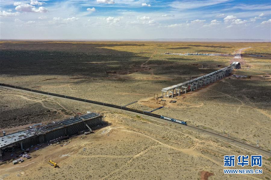烏瑪高速青銅峽至中衛(wèi)段穿越騰格里沙漠的18公里路段,與中國首條沙漠鐵路——包蘭鐵路交匯(7月10日攝,無人機(jī)照片)。盛夏時(shí)節(jié),位于寧夏境內(nèi)的烏瑪(內(nèi)蒙古烏海市至青?,斍呖h)高速青銅峽至中衛(wèi)段正在抓緊施工建設(shè)。該路段主線全長122.9公里,其中穿越騰格里沙漠腹地的18公里公路是寧夏建設(shè)的首條沙漠高速公路,預(yù)計(jì)2021年建成通車。新華社記者馮開華攝。
