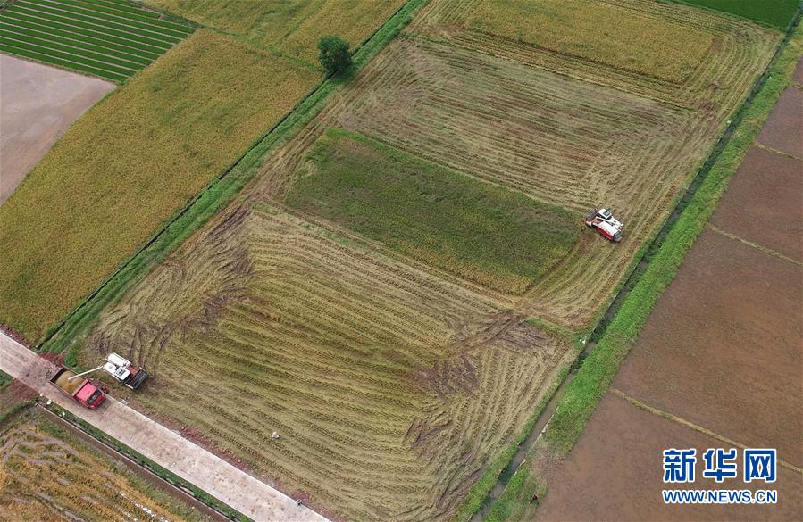 7月11日,在湖南省衡陽市衡陽縣臺源鎮(zhèn)臺九村,村民駕駛收割機收割早稻(無人機照片)。近日,湖南各地農(nóng)村陸續(xù)進入“雙搶”季,農(nóng)民緊抓農(nóng)時,搶收搶種,力爭糧食穩(wěn)產(chǎn)豐收。新華社記者趙眾志攝
