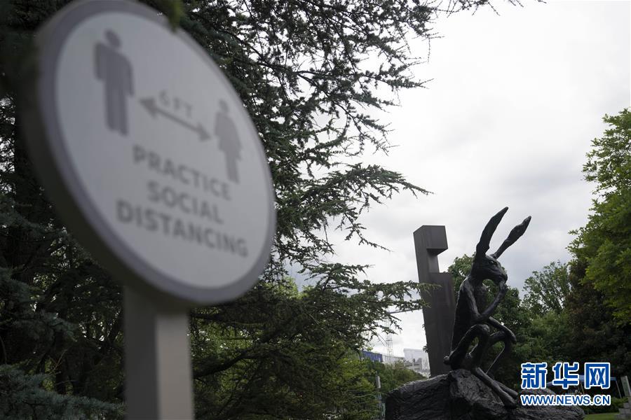 7月11日,在美國華盛頓的國家藝術(shù)畫廊雕塑公園,一座雕塑旁立著保持社交距離的提示牌。美國約翰斯·霍普金斯大學(xué)11日發(fā)布的新冠疫情最新統(tǒng)計(jì)數(shù)據(jù)顯示,截至美國東部時(shí)間11日18時(shí)34分(北京時(shí)間12日6時(shí)34分),美國累計(jì)確診病例3242073例。新華社記者劉杰攝