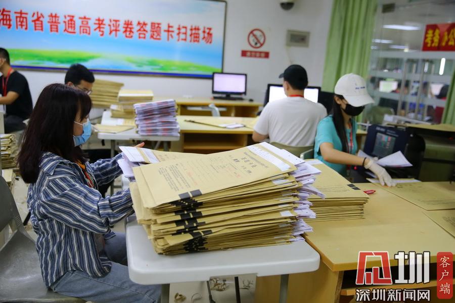 2020年7月13日,在海南師范大學(xué)高考評卷場,工作人員仔細(xì)拆封考卷并進(jìn)行掃描入電腦,整個過程井然有序。在評卷現(xiàn)場的入口,除了有武警把守之外,所有工作人員進(jìn)入到評卷場均有專人使用手柄式金屬探測器對其進(jìn)行安檢,并通過身份證識別系統(tǒng)中進(jìn)行身份識別,方可以進(jìn)入??忌痤}卡由武警24小時值守,并實(shí)行嚴(yán)密的視頻監(jiān)控。