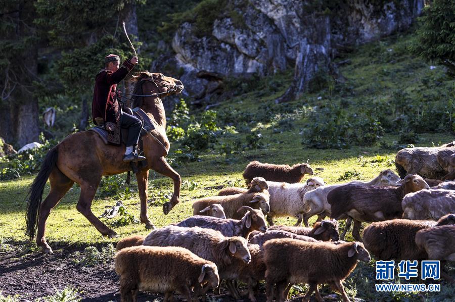 時(shí)值盛夏,新疆西天山水草豐美,夏牧場(chǎng)上牛羊成群。和煦的陽(yáng)光普照草場(chǎng),也照進(jìn)牧民心中。