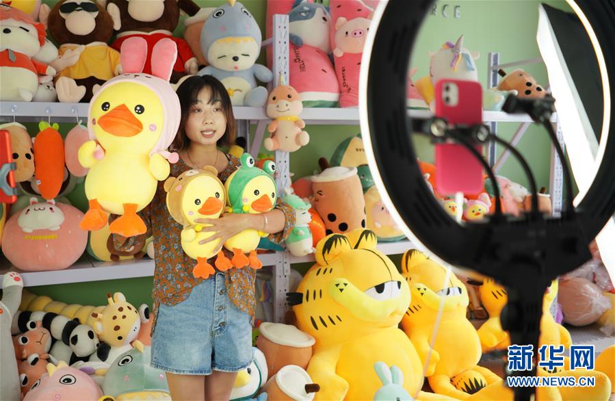 7月13日,河北省內丘縣一家玩具生產(chǎn)企業(yè)工作人員通過網(wǎng)絡直播銷售毛絨玩具。近年來,河北省內丘縣積極拓寬農(nóng)村留守婦女就業(yè)創(chuàng)業(yè)渠道,通過開展就業(yè)技能培訓,對接用工企業(yè)為農(nóng)村留守婦女搭建就業(yè)平臺,吸納農(nóng)村婦女在家門口穩(wěn)定就業(yè)增收,實現(xiàn)顧家、賺錢兩不誤。新華社記者 朱旭東 攝