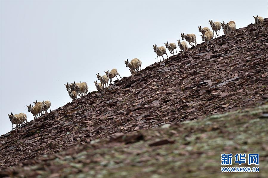 7月7日在可可西里卓乃湖區(qū)域拍攝的藏羚羊。目前正值藏羚羊產(chǎn)仔季。來自青海三江源、新疆阿爾金山、西藏羌塘等地的藏羚羊來到位于青海省可可西里腹地、被譽(yù)為“藏羚羊大產(chǎn)房”的卓乃湖區(qū)域產(chǎn)仔。新華社記者 張龍 攝