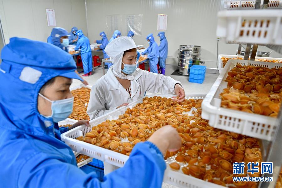 7月14日,福建省連江縣一家鮑魚加工企業(yè),工人在搬運(yùn)鮑魚產(chǎn)品。新華社記者 姜克紅 攝
