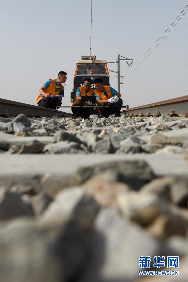鋼軌打磨機(jī)組的技術(shù)員進(jìn)行鋼軌巡檢(7月14日攝)。新華社記者 丁磊 攝