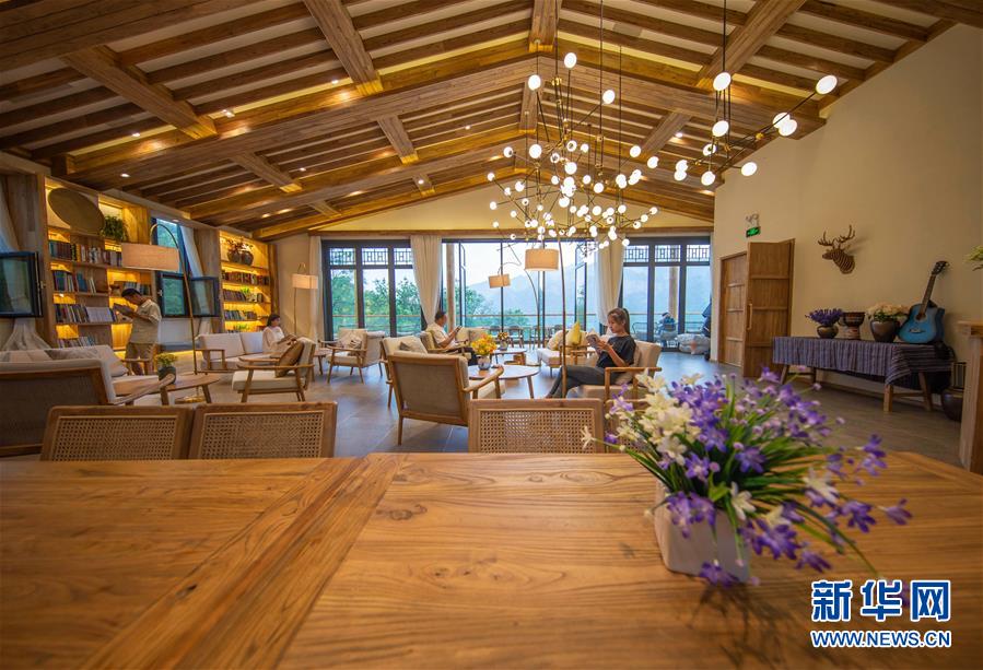 7月15日,游客在武安市活水鄉(xiāng)一家民宿內(nèi)閱讀。新華社記者 王曉 攝