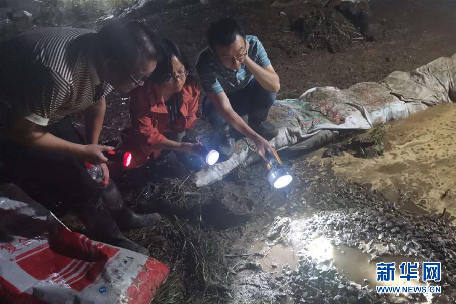 7月13日晚,樅陽縣水利局高級(jí)工程師舒曉安(左一)在處置圩堤突發(fā)險(xiǎn)情。受長(zhǎng)江持續(xù)高水位影響,安徽省樅陽縣的鐵銅鄉(xiāng)江心洲已于近日將江心洲上的居民轉(zhuǎn)移安置,而包括搶險(xiǎn)隊(duì)員、鄉(xiāng)鎮(zhèn)干部、水利工程師等在內(nèi)的近300人“留守”在江心洲上巡堤查險(xiǎn),守護(hù)家園。鐵銅鄉(xiāng)位于長(zhǎng)江江心洲上,有4個(gè)行政村52個(gè)村民組,耕地面積12000多畝。新華社發(fā)
