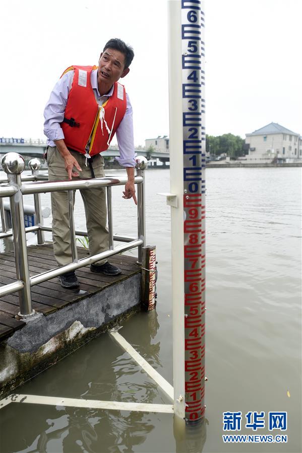 7月17日,王江涇水文站工作人員介紹京杭大運河水位情況。浙江省嘉興市秀洲區(qū)處在杭嘉湖平原,受持續(xù)強降雨及上游排水影響,近期,秀洲區(qū)境內的京杭大運河分支航道持續(xù)保持較高水位。當地相關部門嚴陣以待,落實各項措施,確保安全度汛。新華社記者韓傳號攝