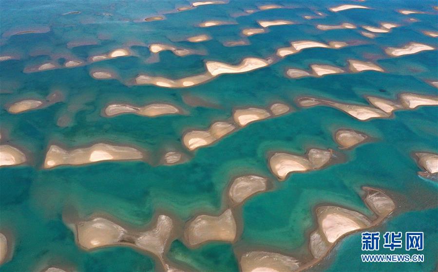 7月10日拍攝的青海湖鳥(niǎo)島一角(無(wú)人機(jī)照片)。新華社記者張宏祥攝