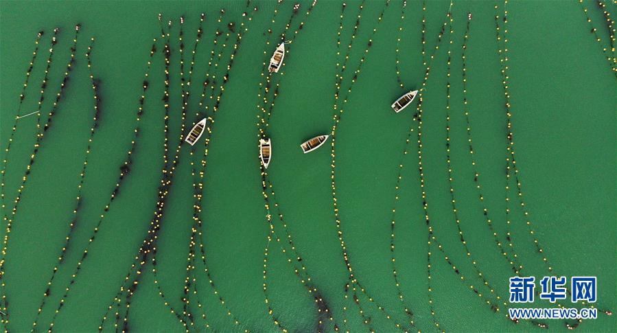 7月15日拍攝的山東省榮成市一處國家級(jí)海洋牧場(無人機(jī)照片)。新華社記者王凱攝