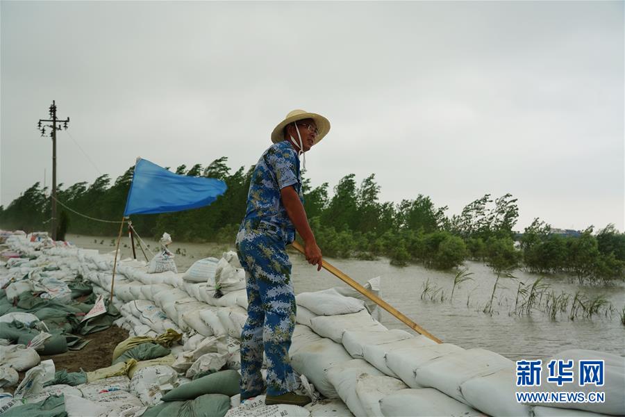 劉良武在江洲鎮(zhèn)的長江堤壩上巡查(7月19日攝)。新華社記者周密攝