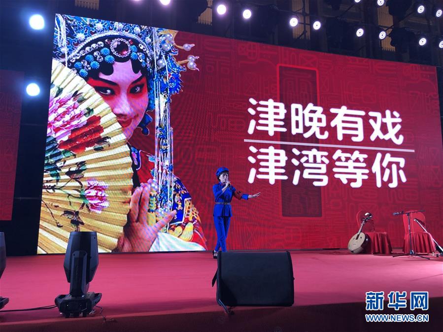 京劇愛(ài)好者在天津津?yàn)硰V場(chǎng)表演經(jīng)典京劇唱段(7月19日手機(jī)拍攝)。新華社記者宋瑞攝