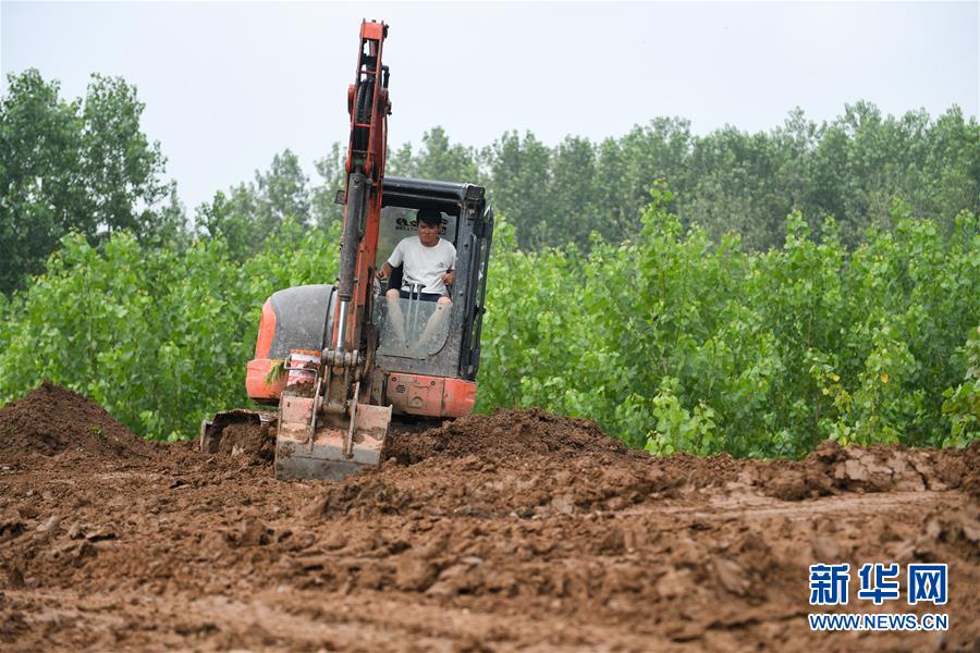 7月20日,在永固垸西線防洪大堤,工作人員處置滲漏險(xiǎn)情。新華社記者陳澤國攝