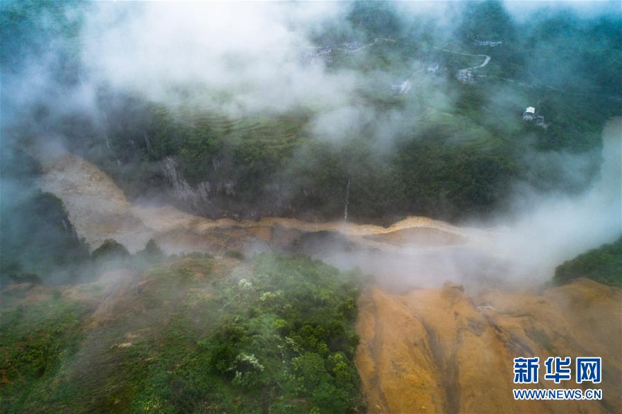 7月21日拍攝的因恩施州屯堡鄉(xiāng)馬者村山體滑坡形成的堰塞湖(無人機照片)。當日,湖北恩施土家族苗族自治州屯堡鄉(xiāng)馬者村沙子壩滑坡體出現(xiàn)大面積滑移,形成堰塞湖,上游水位已上漲5米左右。目前,相關部門和鄉(xiāng)鎮(zhèn)正在組織形成堰塞湖后可能受影響區(qū)域的群眾轉(zhuǎn)移和交通管控工作。大龍?zhí)端畮煺诩涌祢v庫,最大限度保證廣大群眾生命財產(chǎn)安全。新華社記者肖藝九攝