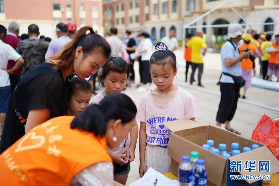 熱心市民來(lái)到江西永修縣湖東學(xué)校安置點(diǎn)捐贈(zèng)物資(7月13日攝)。新華社記者周密攝