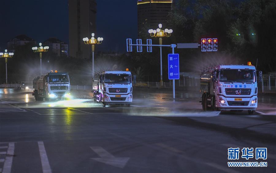 7月20日,烏魯木齊市天山區(qū)城管局清運(yùn)隊(duì)的三臺工作車輛在市區(qū)光明路進(jìn)行消殺作業(yè)。烏魯木齊市天山區(qū)城管局自7月17日起,對天山區(qū)的主次干道76條及235條巷道進(jìn)行集中消殺。目前,烏魯木齊市對重點(diǎn)區(qū)域進(jìn)行全面消毒消殺。新華社記者趙戈攝