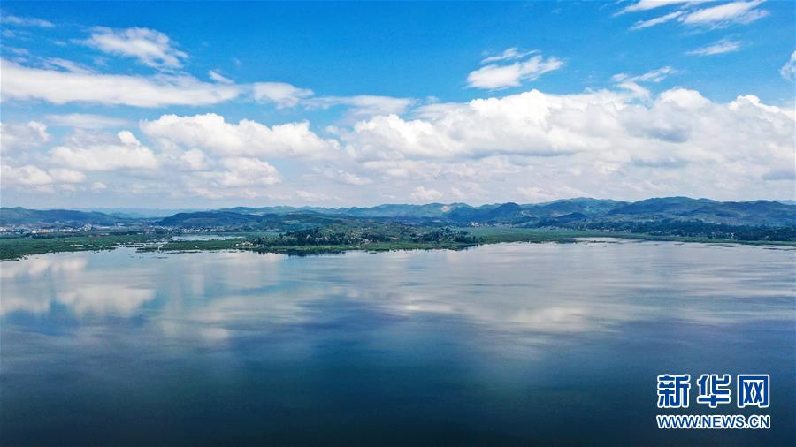 與威寧縣城緊緊相依的草海(6月10日攝無人機(jī)照片)。新華社記者楊文斌攝