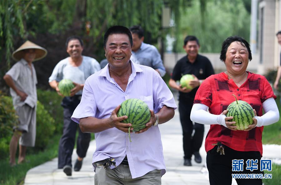 7月22日,廟兜村的村民們在進(jìn)行運(yùn)西瓜比賽。當(dāng)日是大暑節(jié)氣,浙江省湖州市吳興區(qū)織里鎮(zhèn)廟兜村舉行了趣味“賽西瓜”比賽,迎接這個“火熱”的節(jié)氣。廟兜村種植有500多畝西瓜,目前正值西瓜豐收的時節(jié),村民們用“賽西瓜”的形式,感受豐收的喜悅。新華社記者徐昱攝