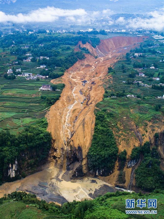 7月22日拍攝的因恩施州屯堡鄉(xiāng)馬者村山體滑坡形成的堰塞湖(無(wú)人機(jī)照片)。