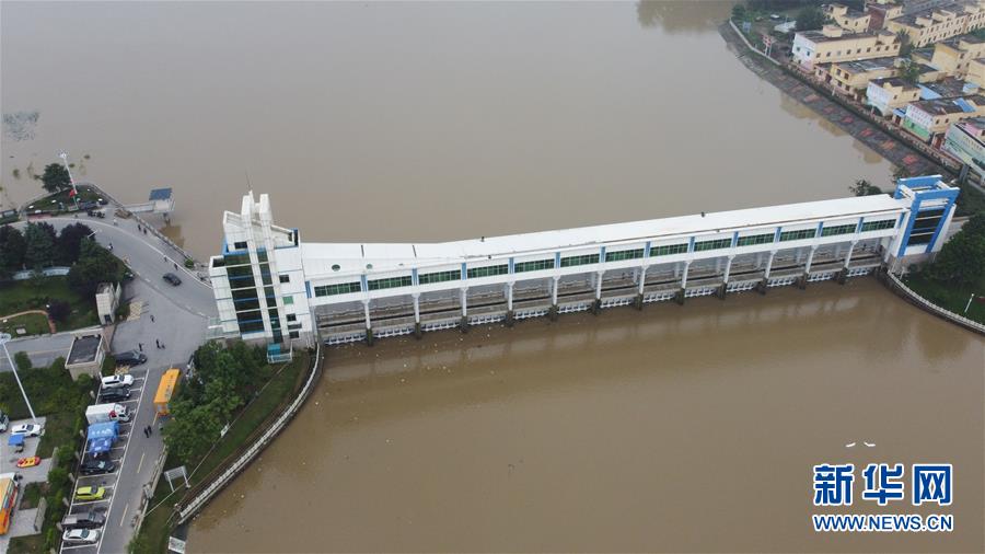 這是7月23日在安徽省阜南縣拍攝的關閘后的淮河王家壩閘(無人機照片)。當日13時,淮河干流王家壩閘關閘,停止向蒙洼蓄洪區(qū)泄洪。新華社記者張端攝