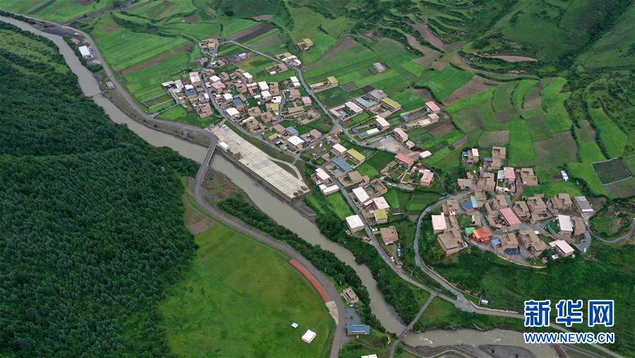 7月5日拍攝的阿壩縣查理鄉(xiāng)神座村(無(wú)人機(jī)照片)。新華社記者陳天湖攝