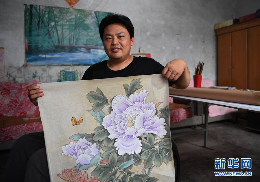 2014年,王紅彬接觸到工筆畫(huà),并為之著迷。在當(dāng)?shù)卣蛺?ài)心畫(huà)師的幫助下,王紅彬克服了身體方面的不適,刻苦學(xué)習(xí)工筆畫(huà)。功夫不負(fù)有心人,經(jīng)過(guò)幾年的堅(jiān)持,王紅彬繪畫(huà)技藝不斷提升,創(chuàng)作的工筆畫(huà)作品走向市場(chǎng),為他帶來(lái)穩(wěn)定的收入。工筆畫(huà)創(chuàng)作讓王紅彬重燃生活的信心,他在用手中的畫(huà)筆書(shū)寫(xiě)多彩的夢(mèng)想。