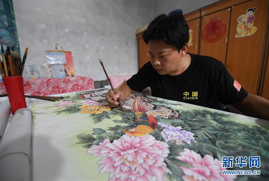 7月22日,王紅彬在家中創(chuàng)作工筆畫(huà)。新華社記者朱旭東攝