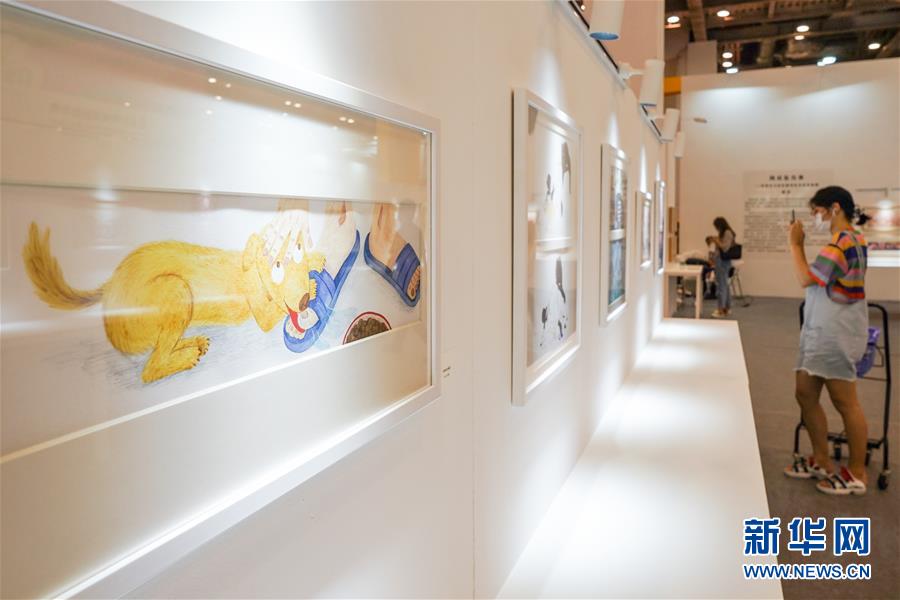 7月23日,讀者在活動現(xiàn)場參觀展出的原創(chuàng)繪本作品。當(dāng)日,第十屆江蘇書展在江蘇蘇州開幕,400多家出版發(fā)行單位參展,吸引眾多讀者選購圖書。新華社記者李博攝