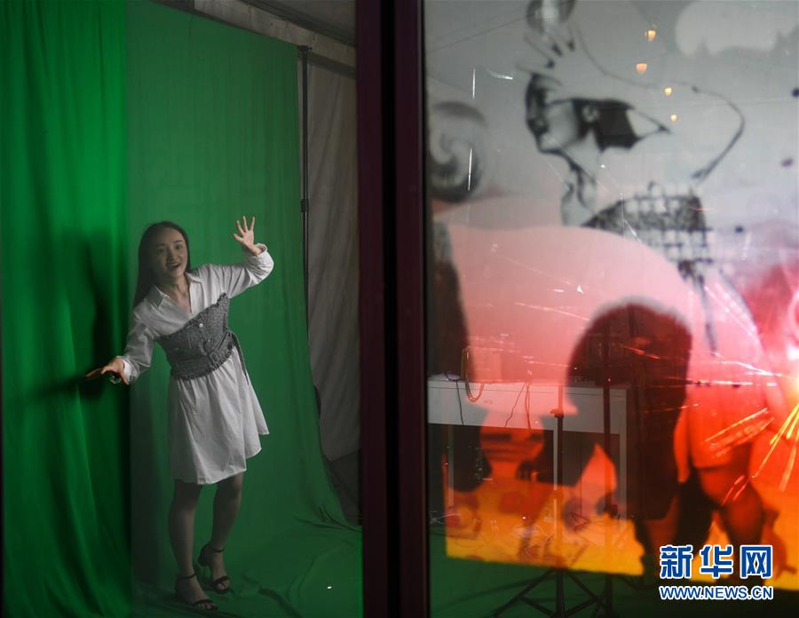 7月23日晚,在成都市成華區(qū)望平街濱河路的天府文創(chuàng)大集市上,游客在體驗虛擬數(shù)字投影設(shè)備。新華社記者 王曦 攝