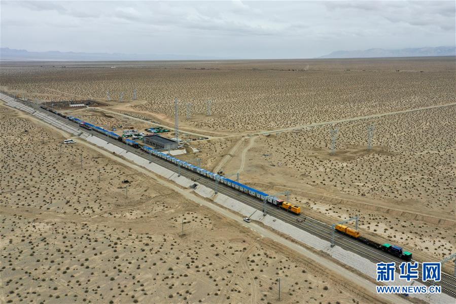 靜駐在戈壁上,它是鐵路工人流動(dòng)的家(7月19日攝,無(wú)人機(jī)照片)。新華社記者 丁磊 攝