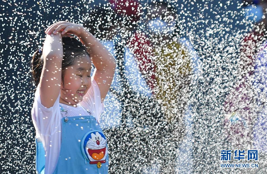 7月24日,一名小女孩在北京華熙LIVE·五棵松商業(yè)街區(qū)的一處噴泉戲水。北京市氣象局7月24日傍晚發(fā)布稱(chēng),24日截至16時(shí)30分,平原大部分地區(qū)出現(xiàn)37℃以上高溫天氣,局地氣溫超過(guò)40℃。北京市已于23日發(fā)布高溫藍(lán)色預(yù)警,預(yù)計(jì)25日全市大部分地區(qū)日最高氣溫仍將達(dá)35℃以上。新華社記者陳曄華攝