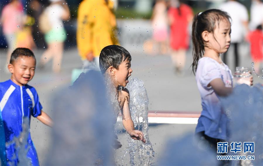 7月24日,孩子們?cè)诒本┤A熙LIVE·五棵松商業(yè)街區(qū)的一處噴泉戲水。北京市氣象局7月24日傍晚發(fā)布稱(chēng),24日截至16時(shí)30分,平原大部分地區(qū)出現(xiàn)37℃以上高溫天氣,局地氣溫超過(guò)40℃。北京市已于23日發(fā)布高溫藍(lán)色預(yù)警,預(yù)計(jì)25日全市大部分地區(qū)日最高氣溫仍將達(dá)35℃以上。新華社記者陳曄華攝